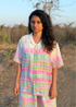 This unisex camp shirt is crafted from upcycled cotton-blend sarees. Lightweight and breathable, it’s designed for long, easy summer days. Pair it with matching shorts for an elevated, breezy holiday set.
