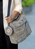 This unisex messenger bag is handcrafted from upcycled block-printed dohar, enhanced with traditional Kantha hand-stitching.